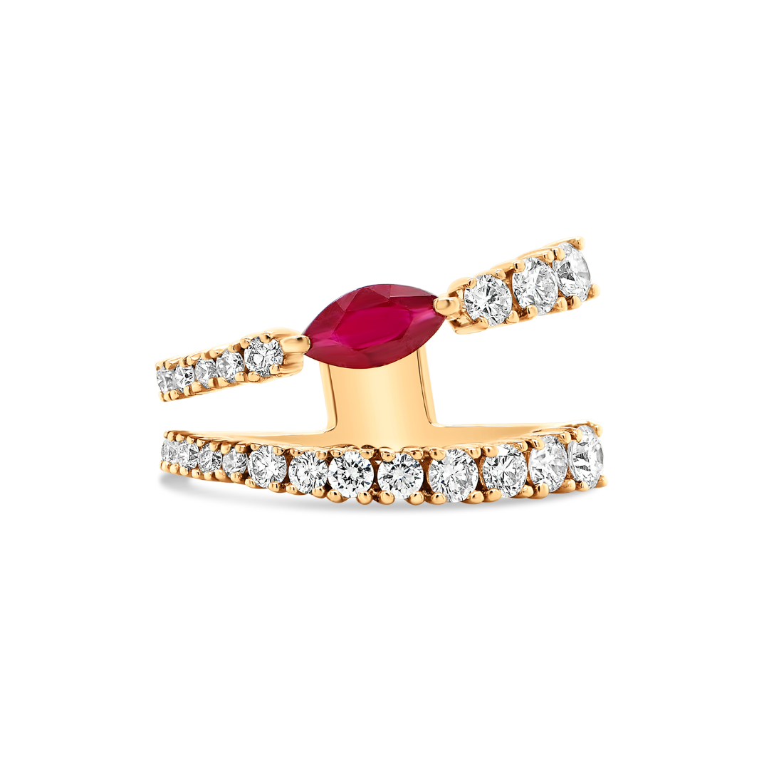 Inel din aur roz de 18K, cu 20 de Diamante naturale Round Brilliant de 0.691ct și un Rubin de 0.47ct.
