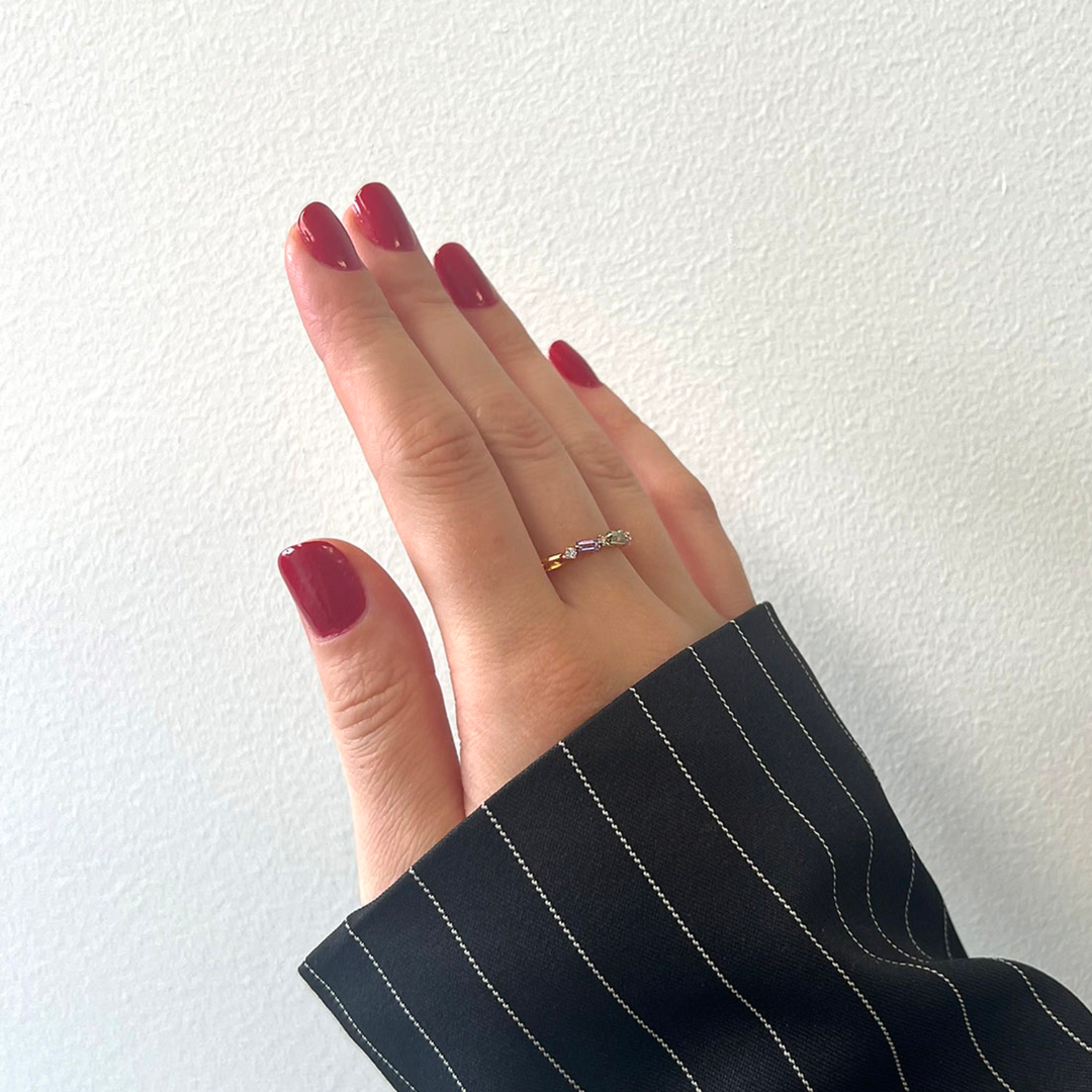 Inel din aur roz de 18K, cu 3 Diamante naturale de 0.067ct și 4 Safire Fancy cu o greutate totală de 0.619ct.
