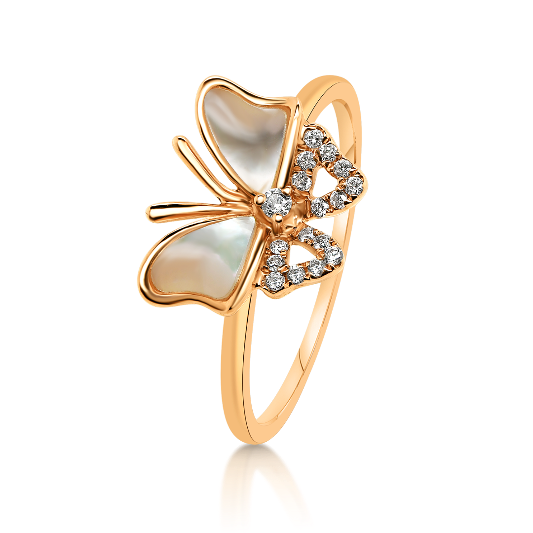 Inel din aur roz de 18K cu Diamante naturale și Sidef