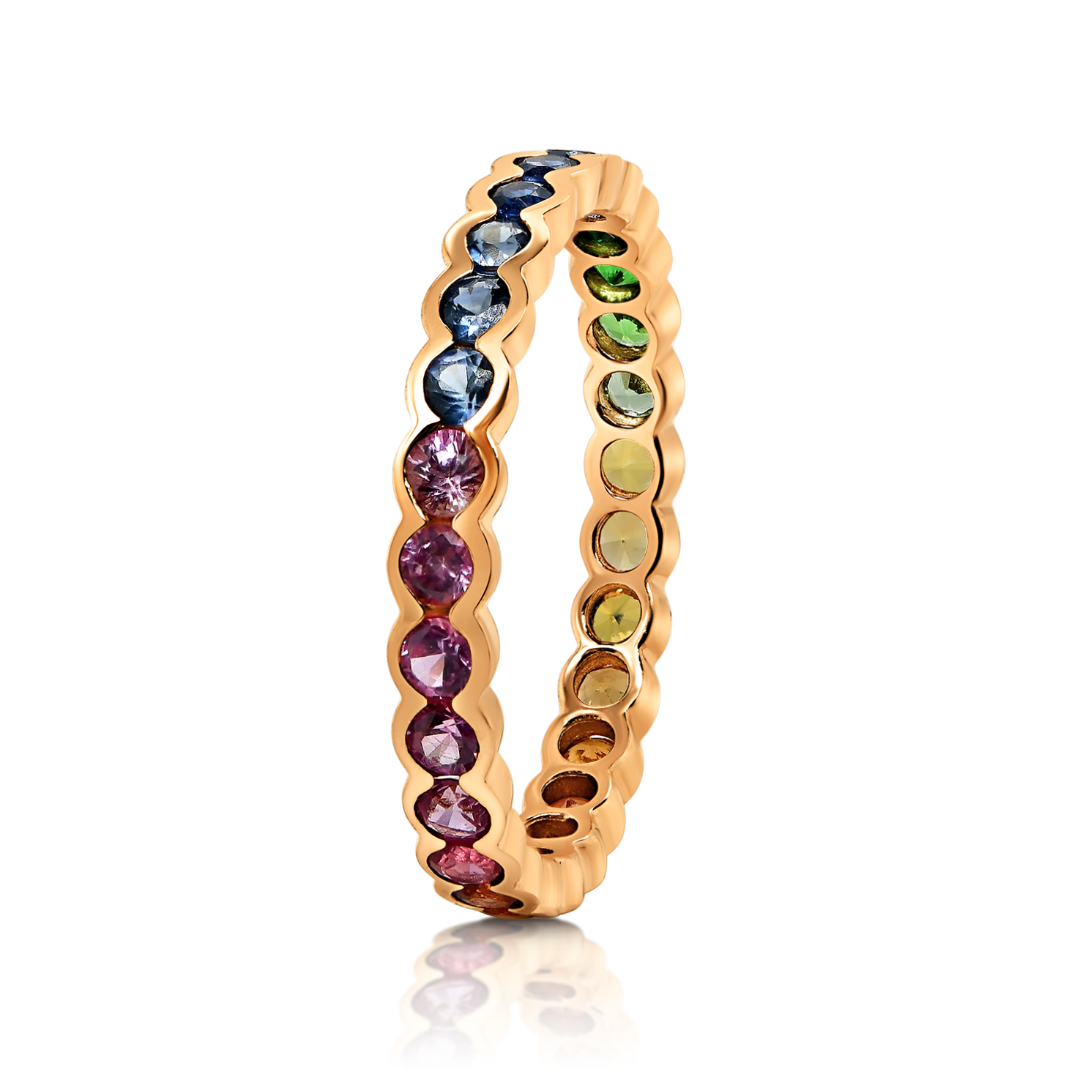 Inel din aur roz de 18K încrustat cu Safire Fancy naturale.
