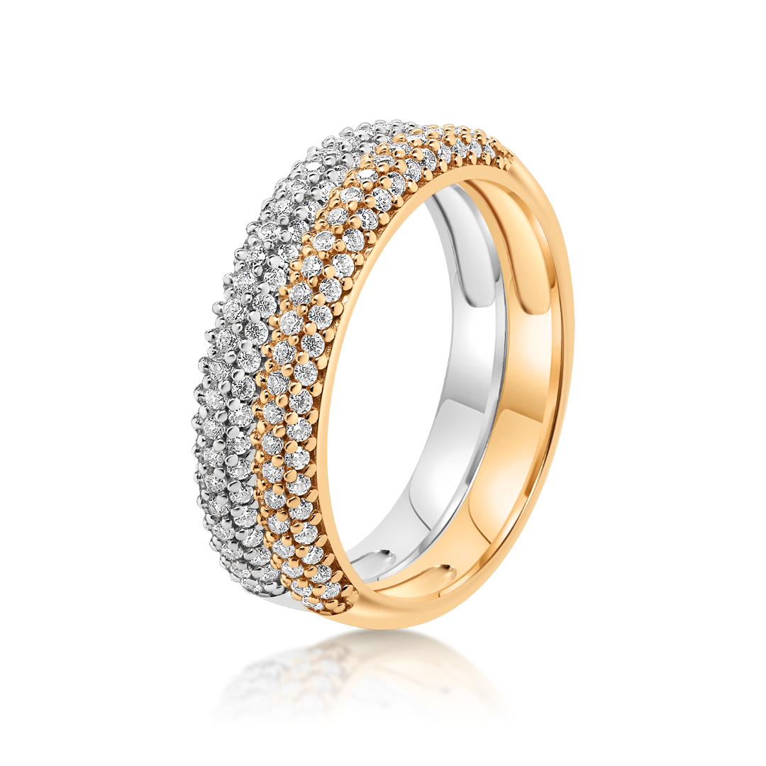 Inel dublu din aur alb și roz, încrustat cu pietre Cubic Zirconia albe.