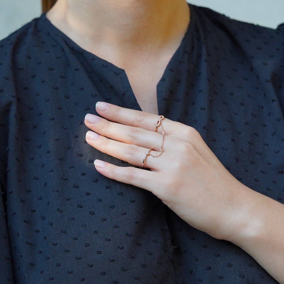 Inel dublu din aur roz de 14K cu zirconia incolore.