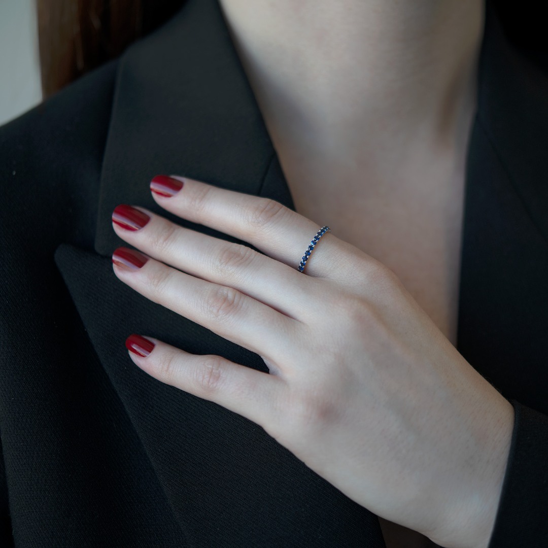 Inel Eternity din aur alb de 18K cu Safire albastre naturale