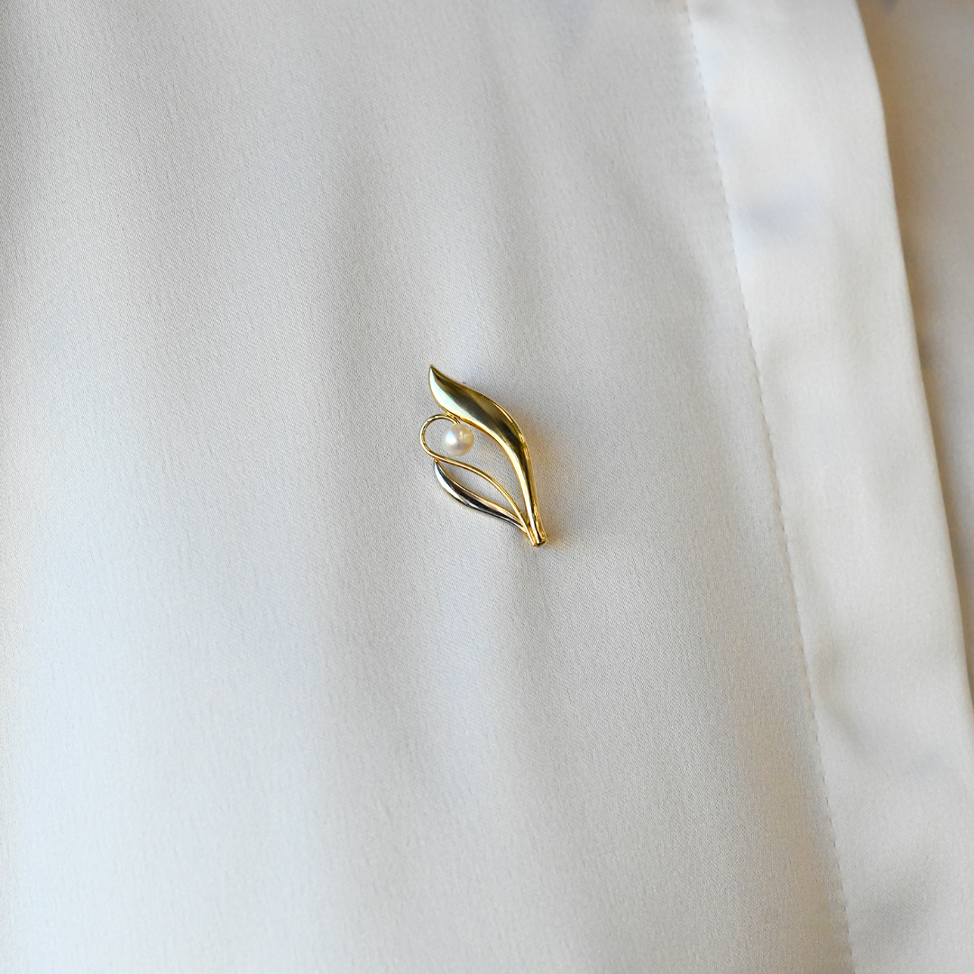 Broșă din aur galben de 14K cu Perlă