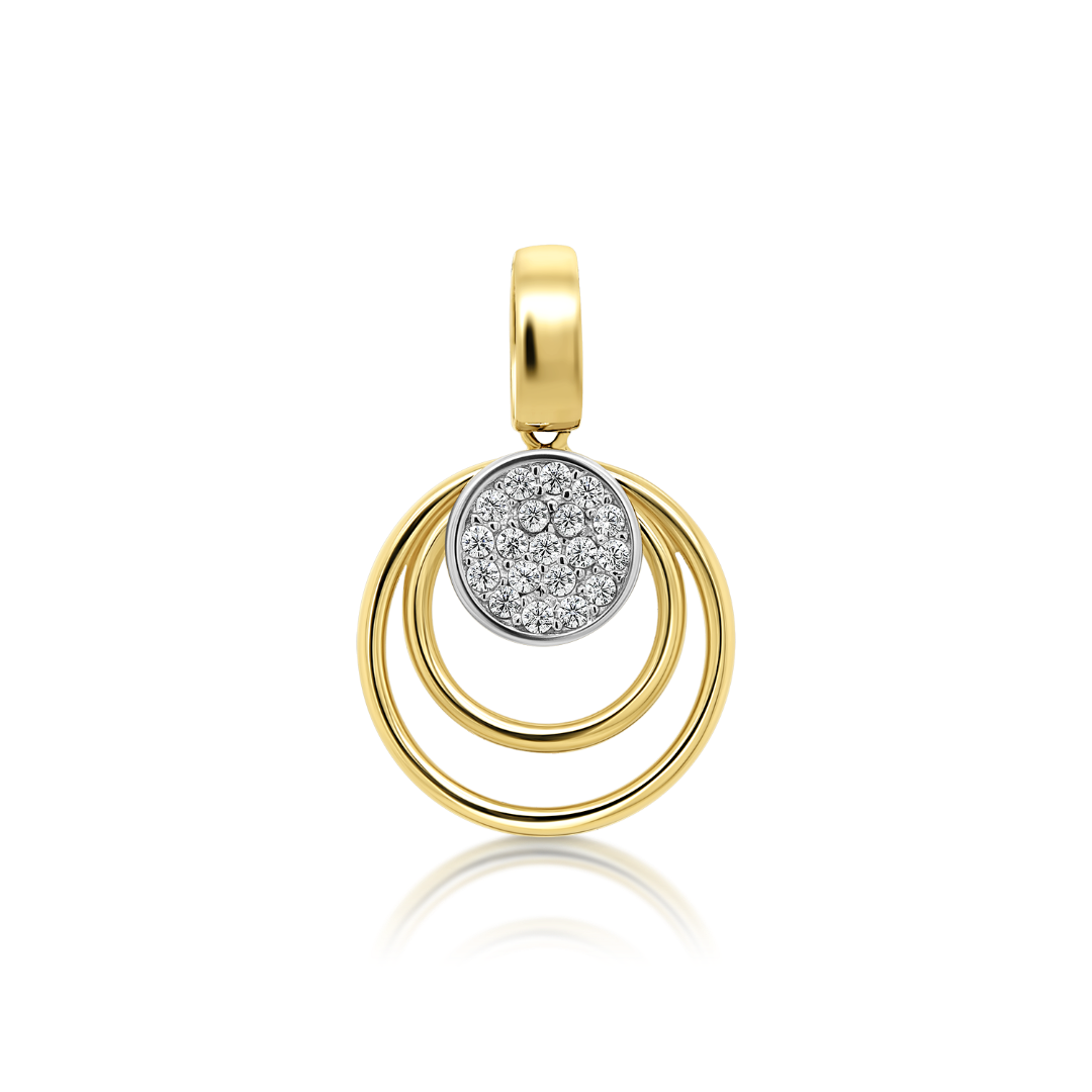 Pandantiv din aur galben de 14K cu elemente geometrice și pietre Cubic Zirconia.
