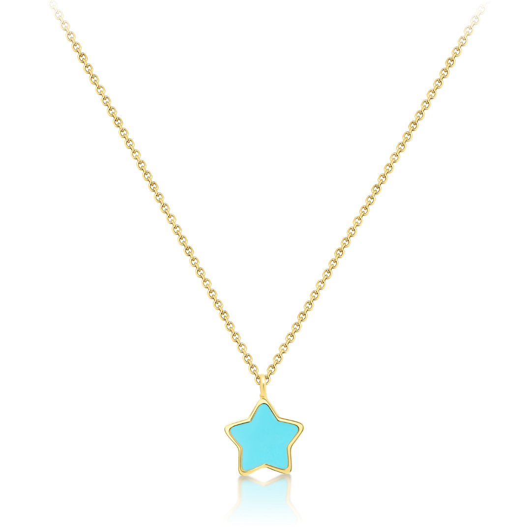Lanț din aur galben de 14K cu pandantiv stea cu Email albastru.