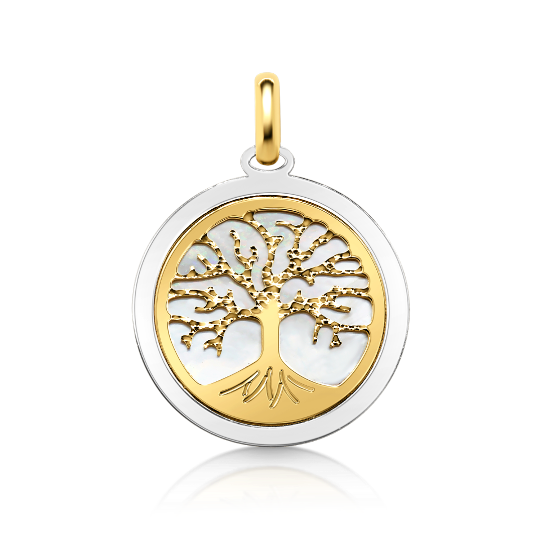 Pandantiv din aur galben de 14K, cu Sidef și element din aur alb.