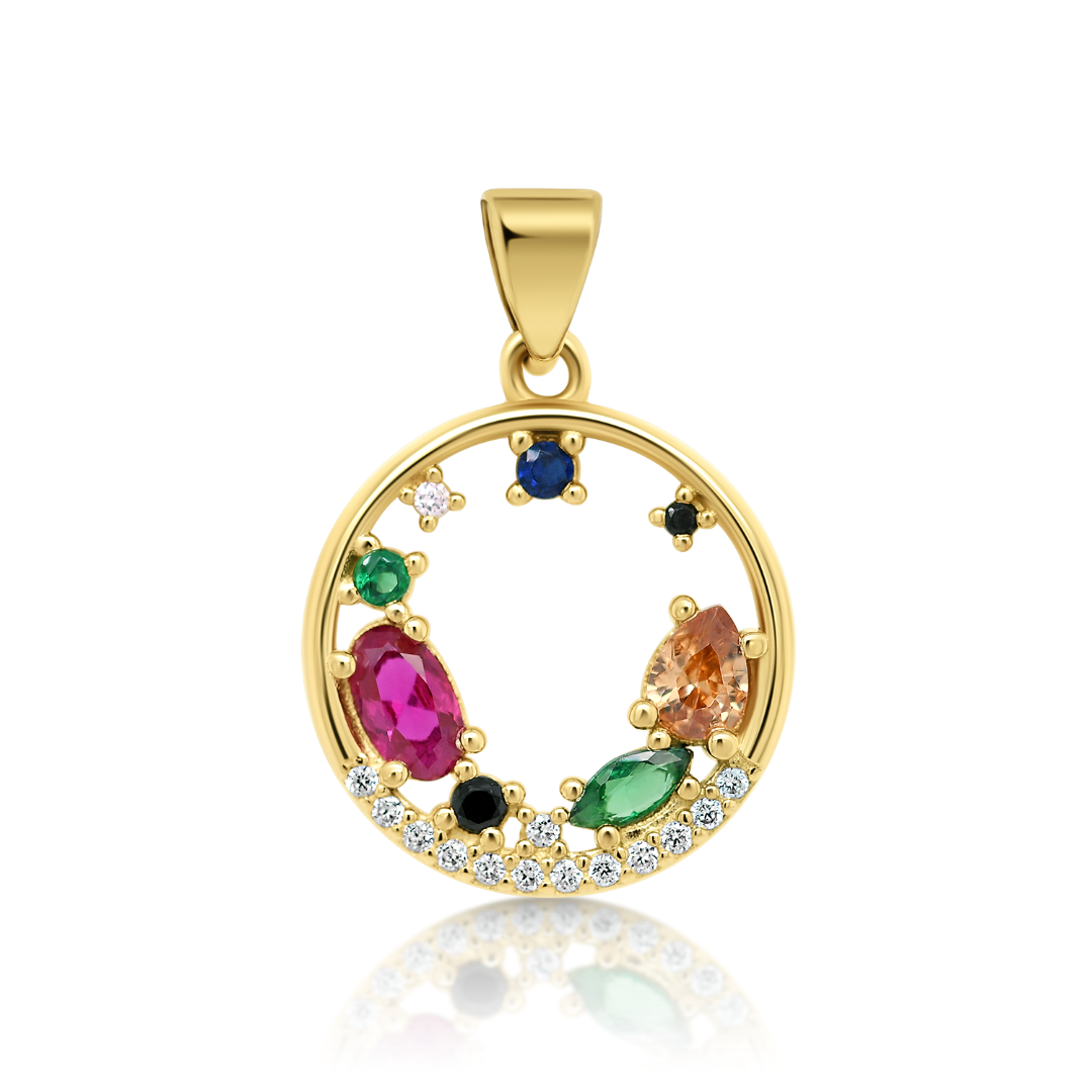 Pandantiv din aur galben de 14K, cu pietre Cubic Zirconia colorate.