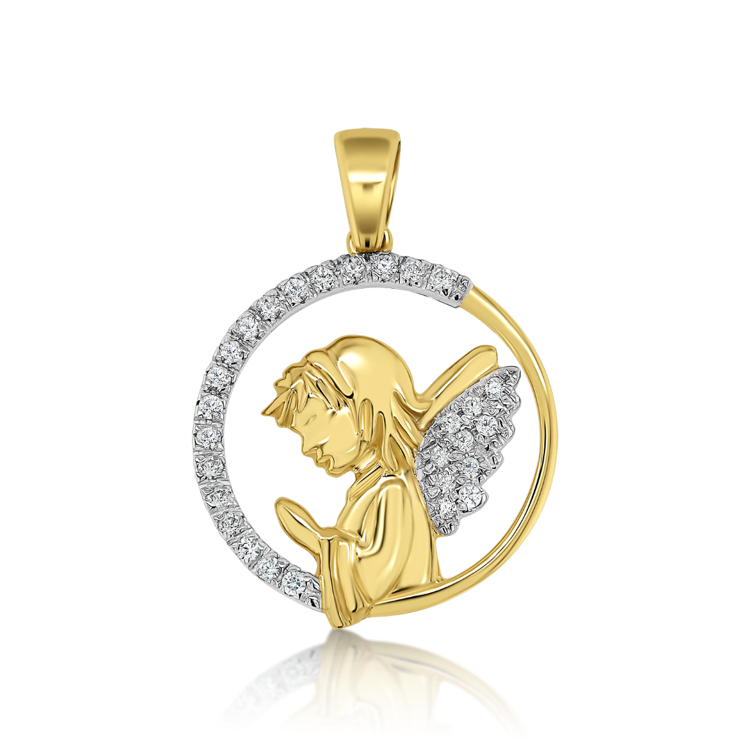 Pandantiv înger din aur galben de 14K, cu pietre Cubic Zirconia.