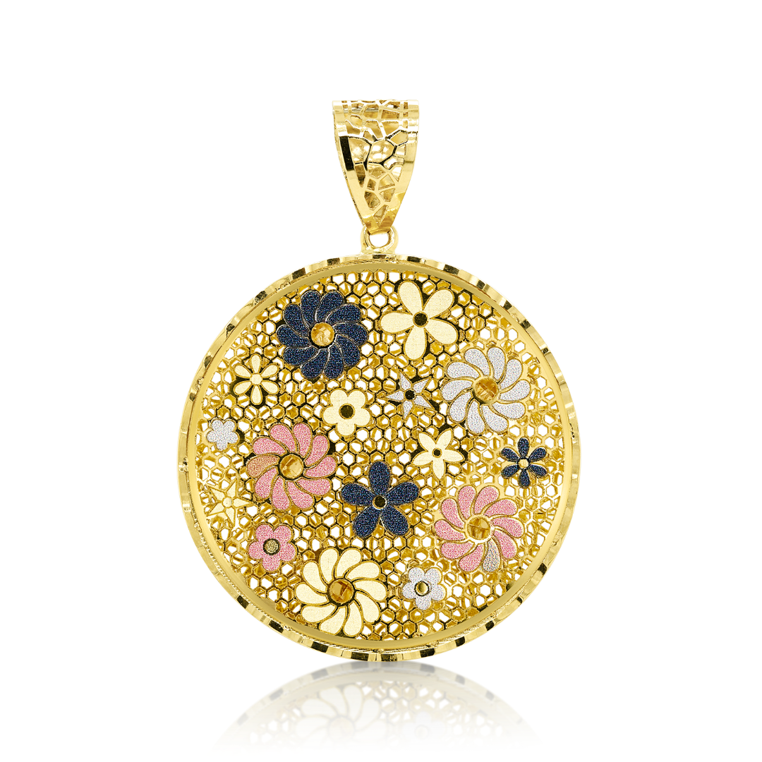 Pandantiv din aur galbe de 14K cu flori filigran