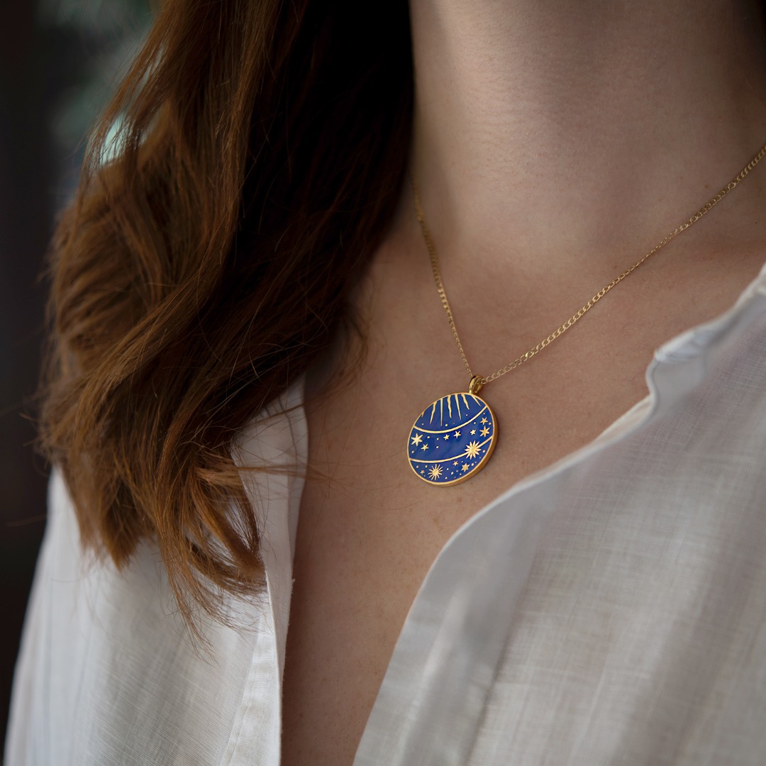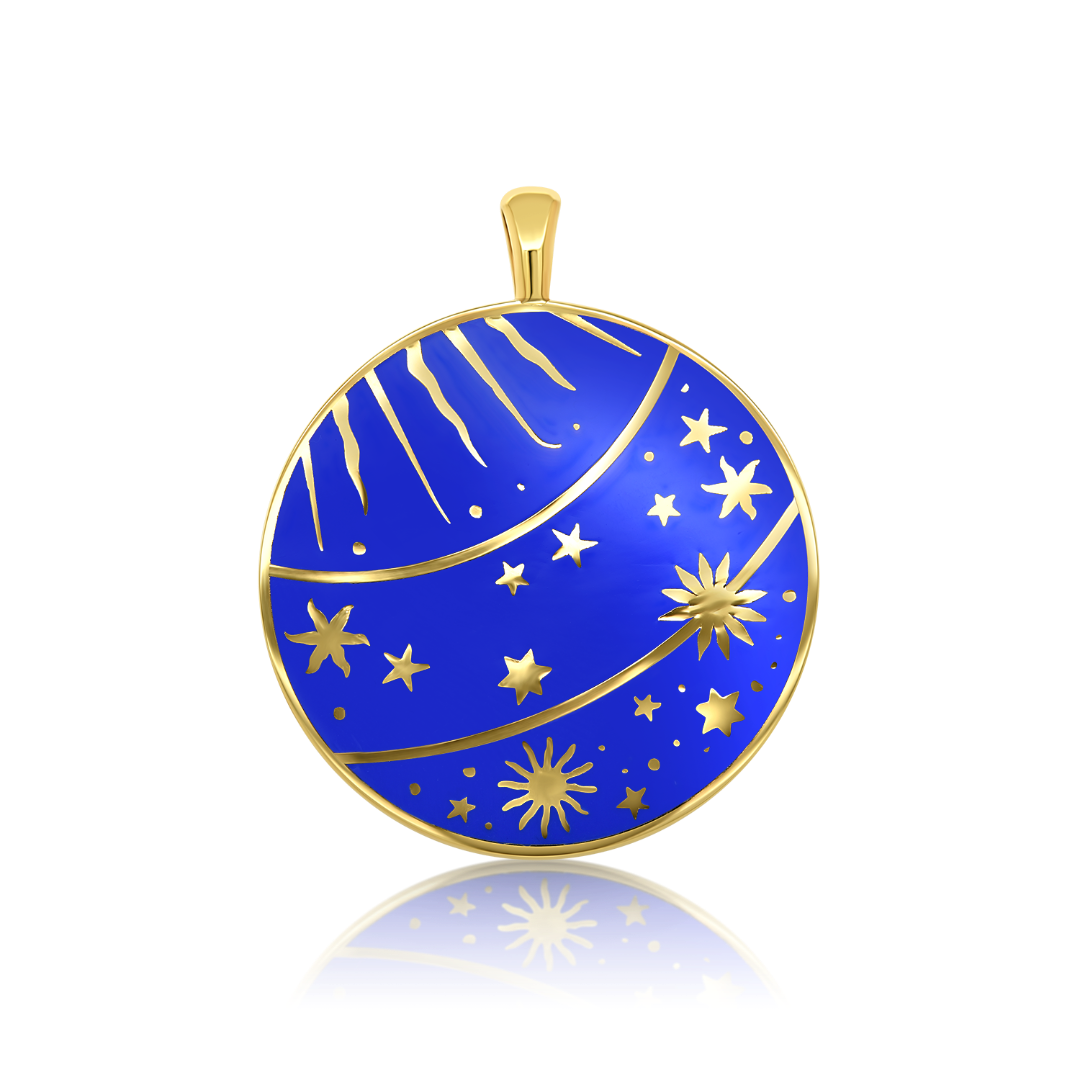 Pandantiv Cosmos din aur galben de 14K cu Ceramică