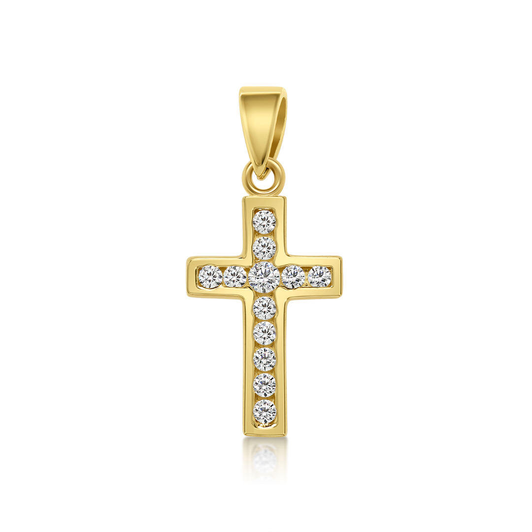 Pandantiv din aur galben de 14K cu pietre Cubic Zirconia albe.