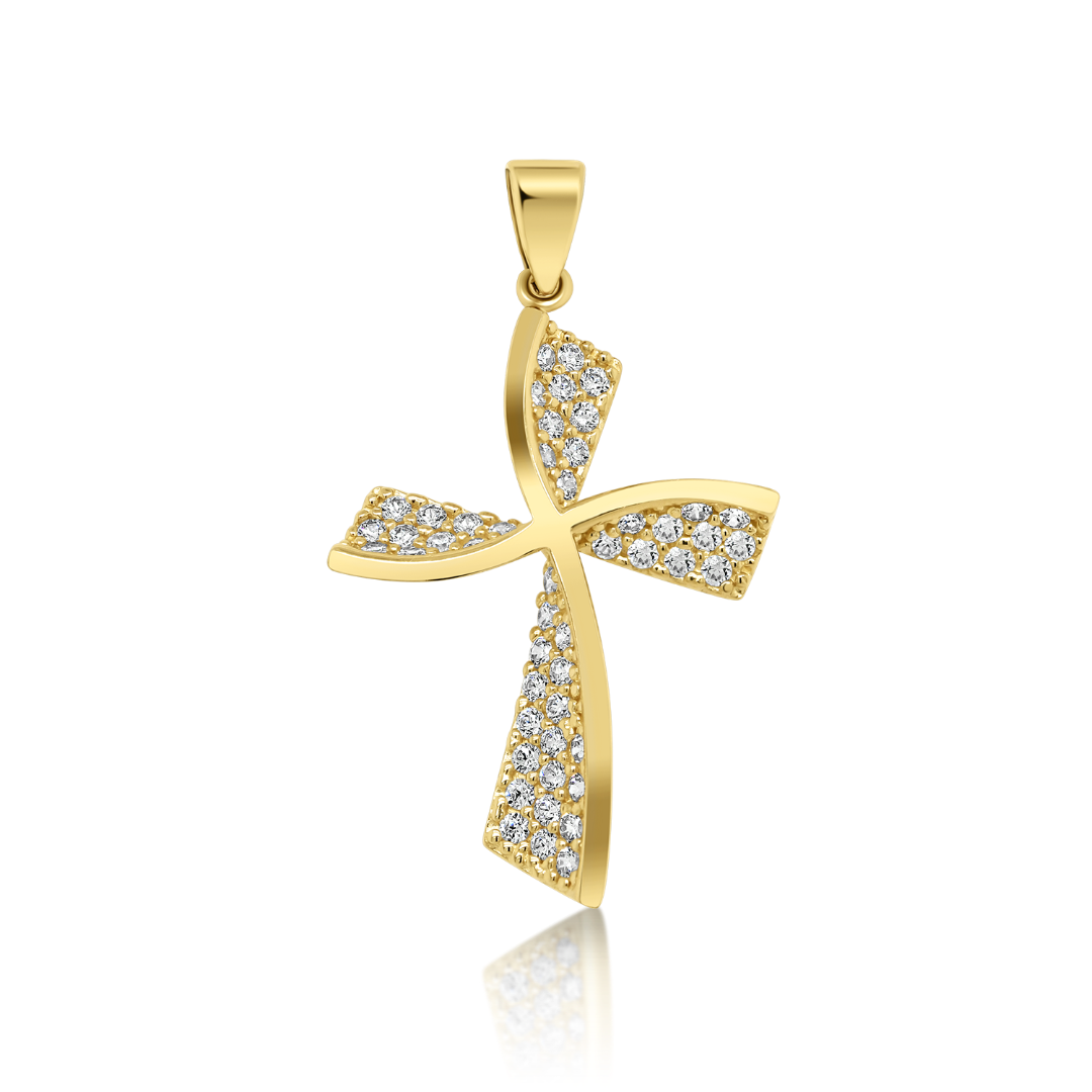 Pandantiv cruce din aur galben de 14K cu pietre cubic zirconia.