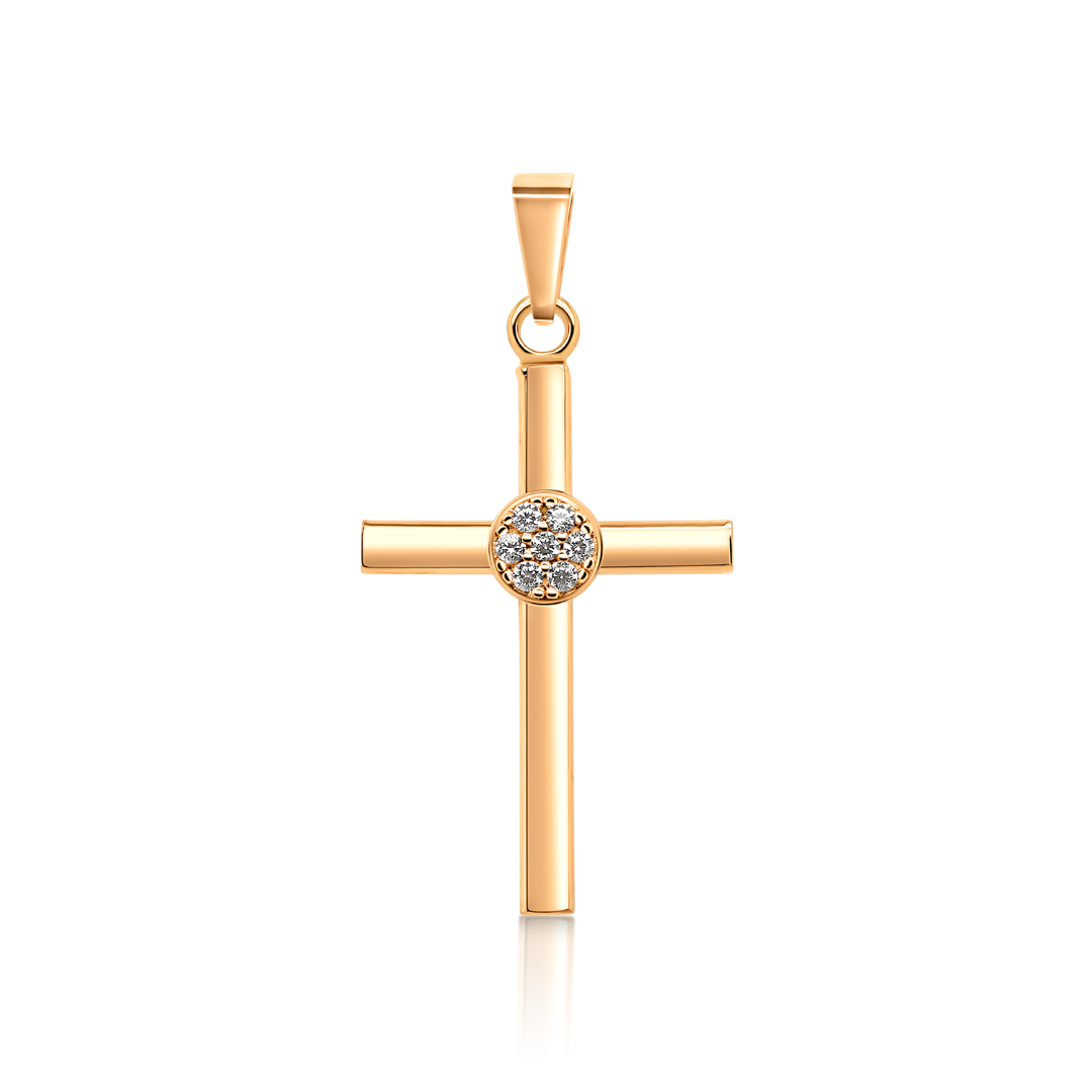 Pandantiv cruce din aur roz de 14K cu pietre zirconia.