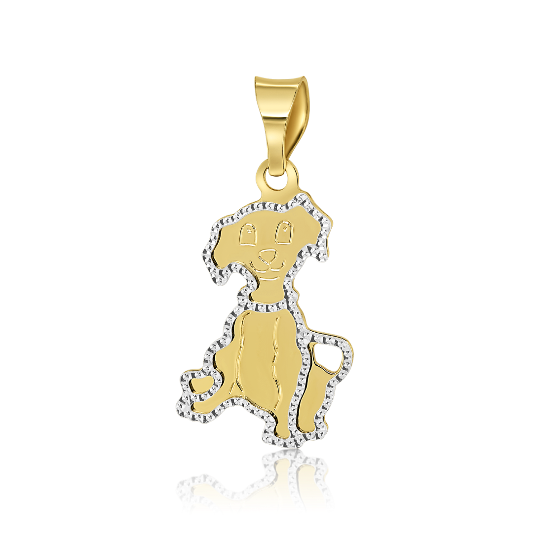 Pandantiv cățel din aur galben de 14K cu margine fațetată.