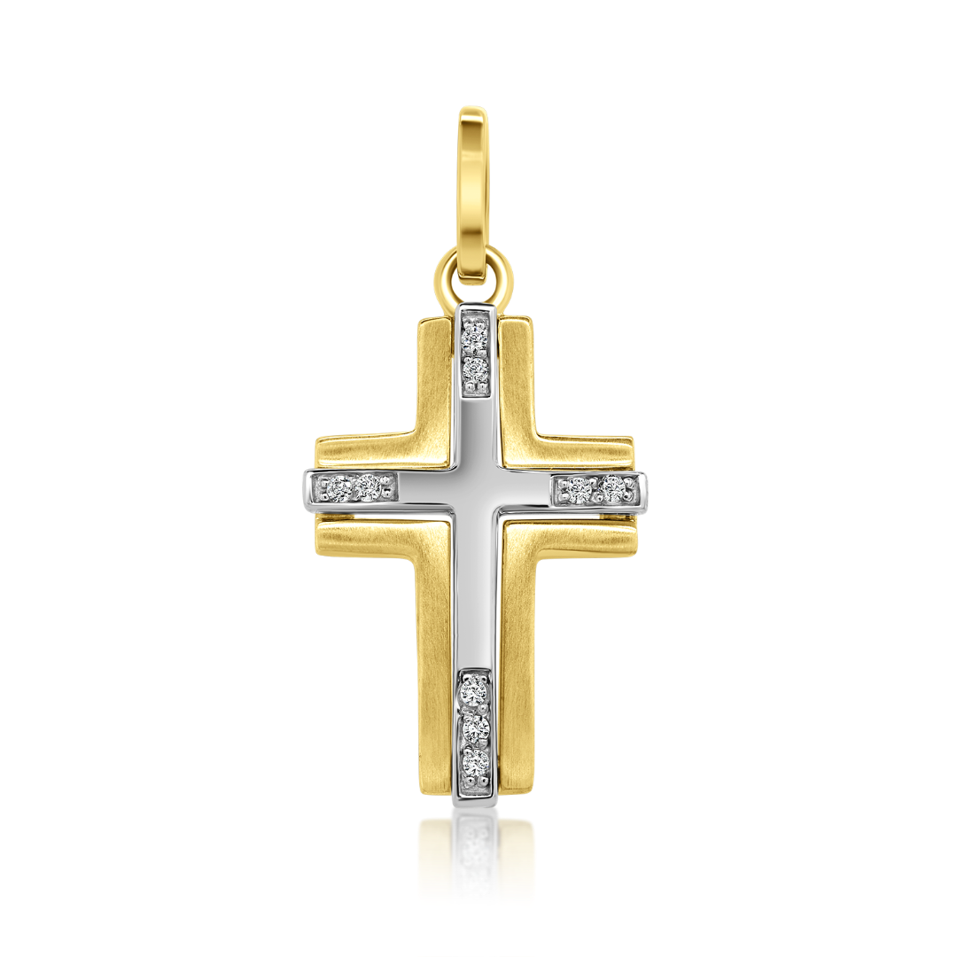 Pandantiv din aur galben de 14K cu element din aur alb și  pietre Cubic Zirconia albe.