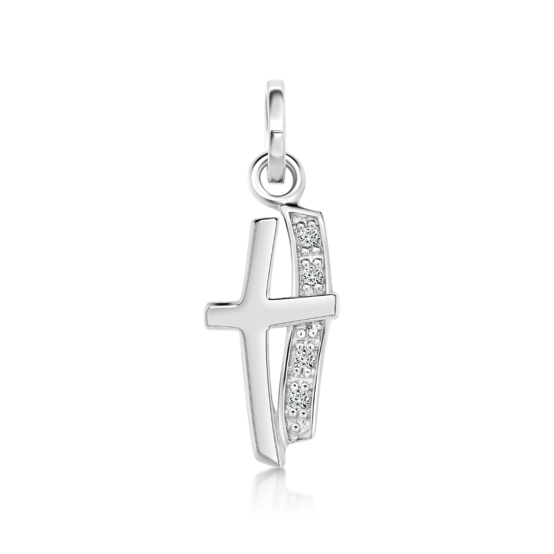 Pandantiv din aur alb de 14K tip cruce cu pietre cubic zirconia.
