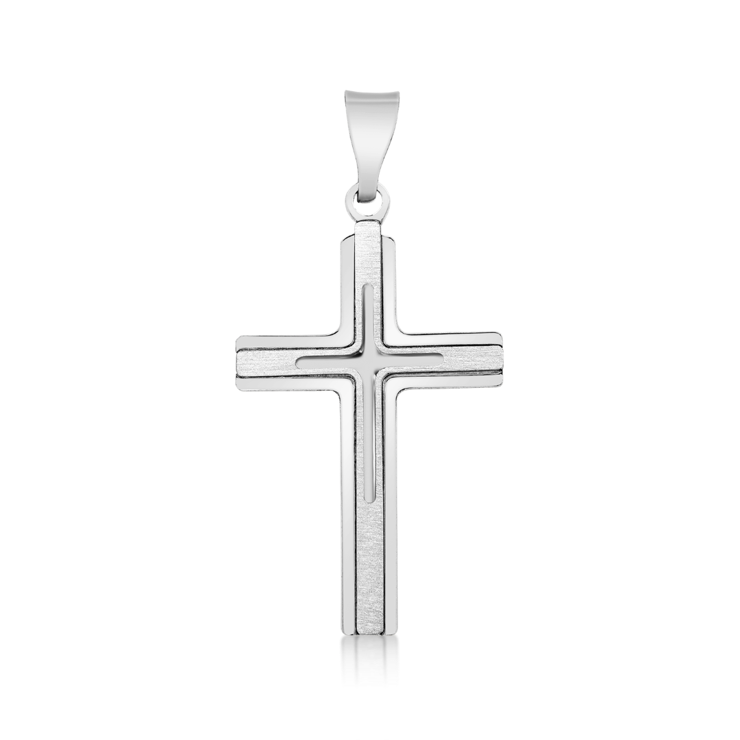 Pandantiv tip cruce din aur alb de 14K