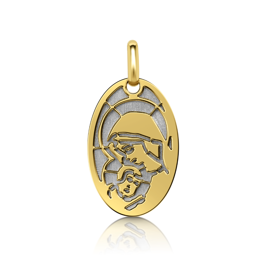 Pandantiv din aur galben de 14K cu elemente din aur alb.