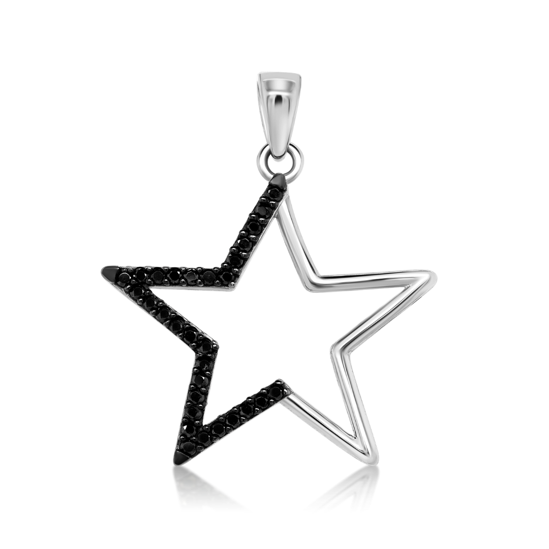 Pandantiv stea din aur alb de 14K, cu rodiu și pietre Cubic Zirconia negre.