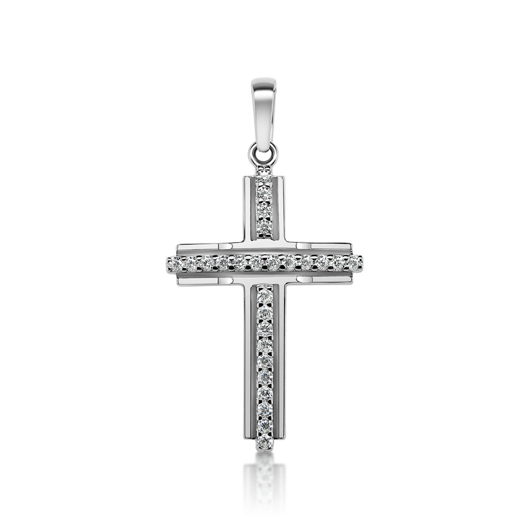 Pandantiv cruce din aur alb de 14K, cu pietre Cubic Zirconia albe.