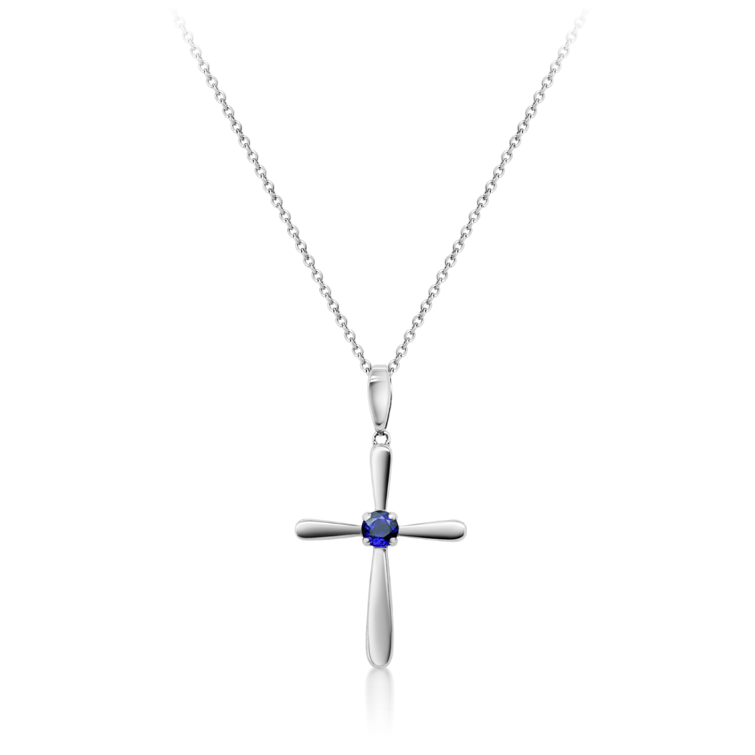 Pandantiv din aur alb de 18K cu Safir natural de 0.08ct.