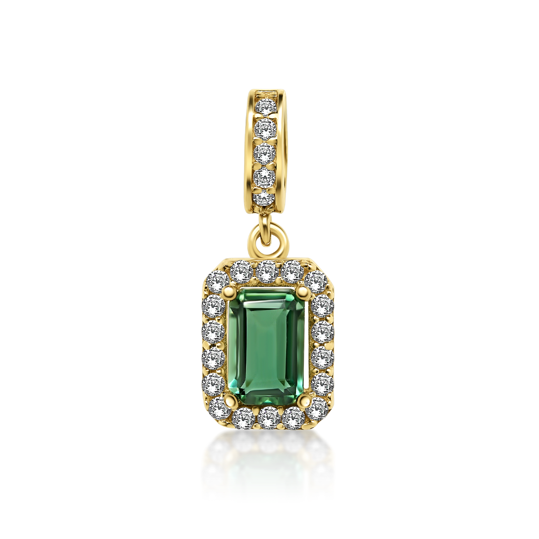 Pandantiv din aur galben de 14K cu pietre Cubic Zirconia albe și verzi.