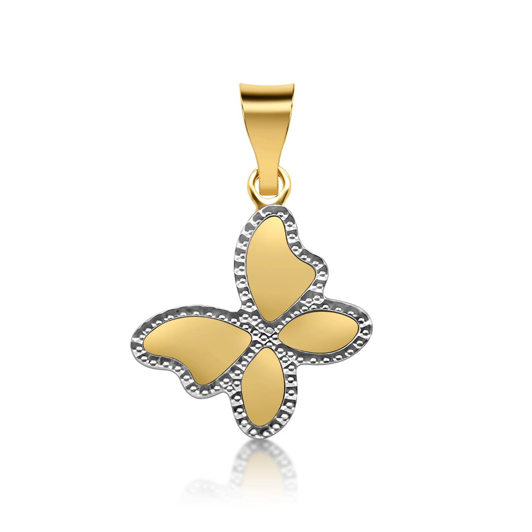Pandantiv din aur galben de 14K cu element fațetat din aur alb.