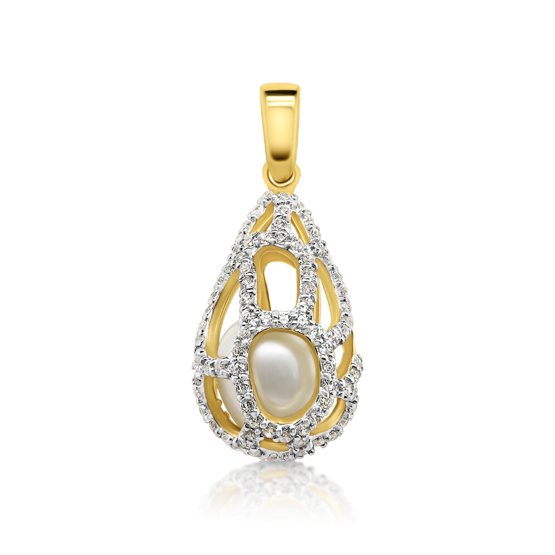 Pandantiv din aur galben de 14K, cu Perlă de cultură și pietre Cubic Zirconia.