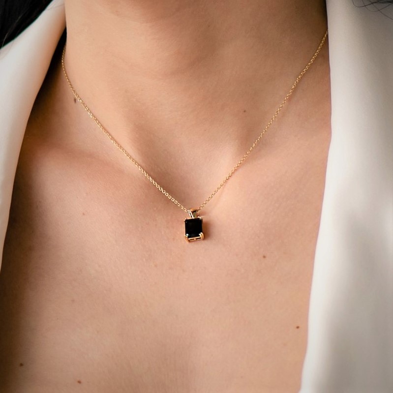 Pandantiv din aur galben de 14K, cu piatră Cubic Zirconia neagră.