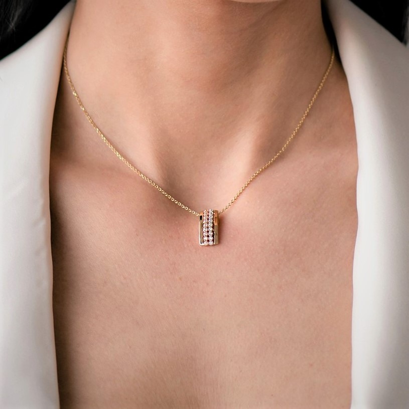 Pandantiv din aur galben de 14K cu pietre zirconia și elemente cu rodiu alb și roz.