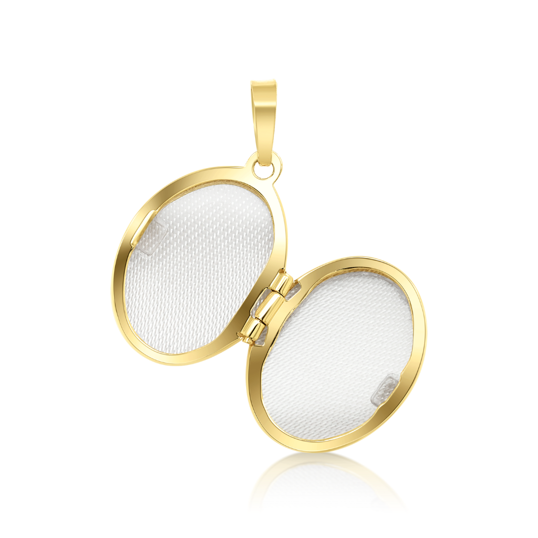 Pandantiv din aur galben de 14K. Acesta poate fi personalizat cu două fotografii.