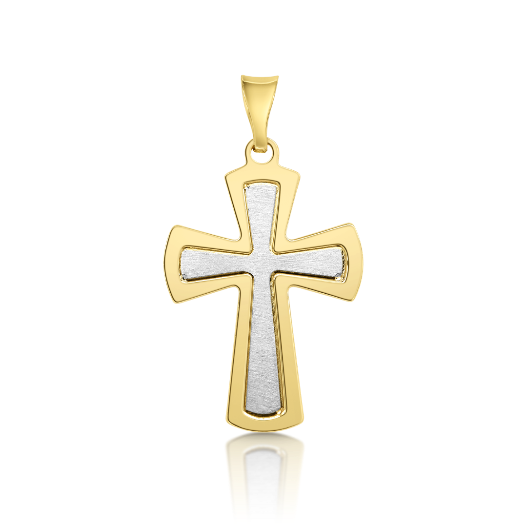 Pandantiv cruce din aur galben de 14K cu element interior din aur alb.