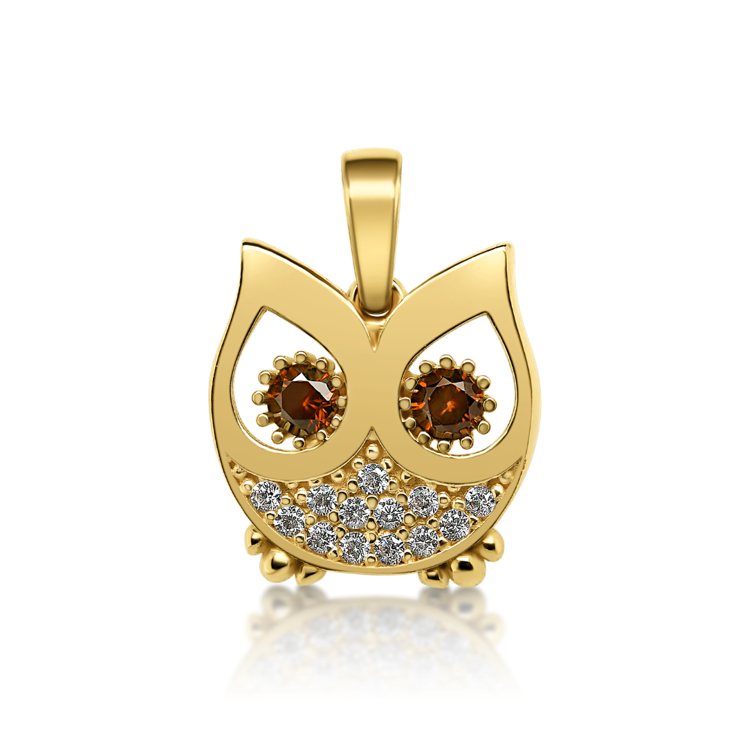 Pandantiv bufniță din aur galben de 14K cu pietre cubic zirconia.