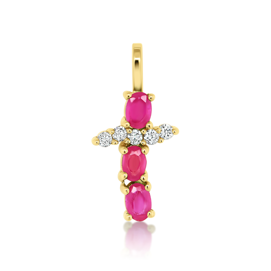 Pandantiv din aur galben de 14K, cu Rubine și Diamante naturale
