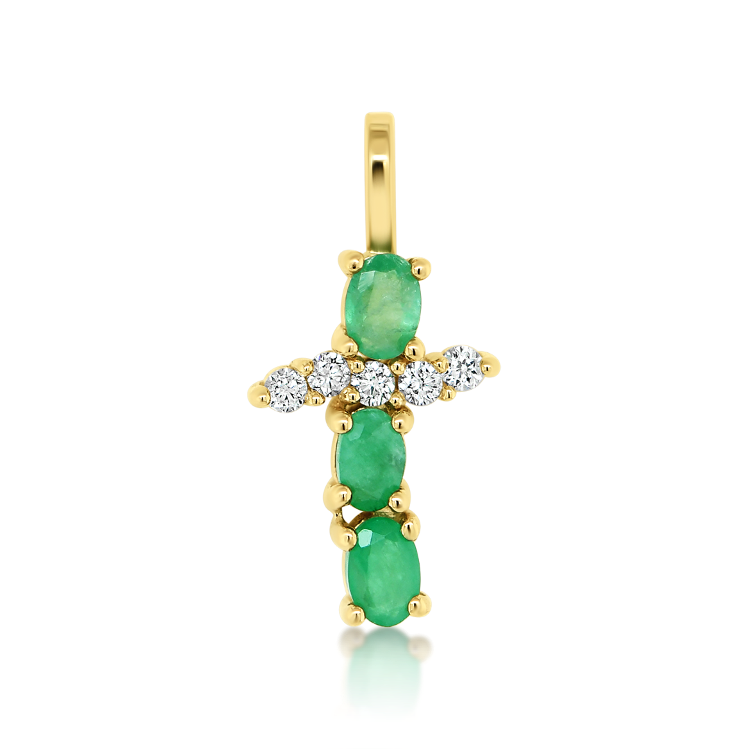 Pandantiv din aur galben de 14K cu Smaralde și Diamante naturale