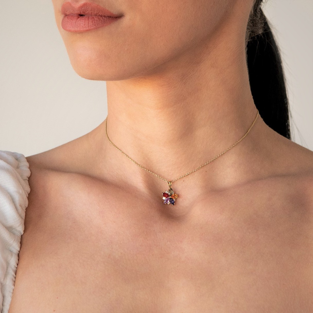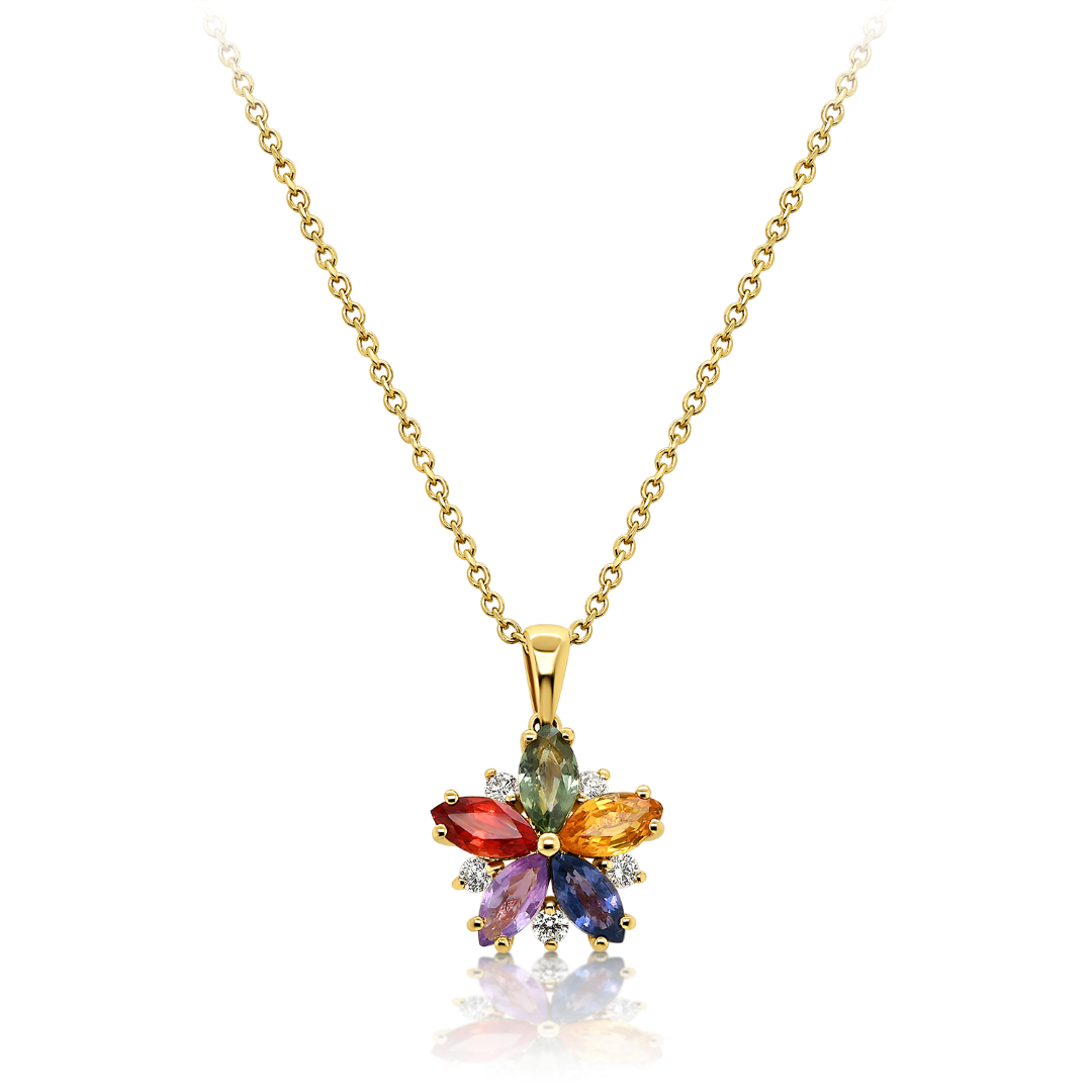 Pandantiv din aur galben de 18K cu Safire colorate și Diamante naturale