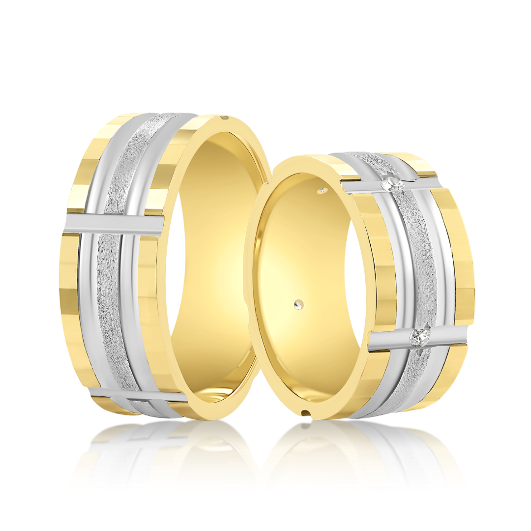 Verighetă bărbat Fancy 112 din aur galben de 14K și rodiu alb