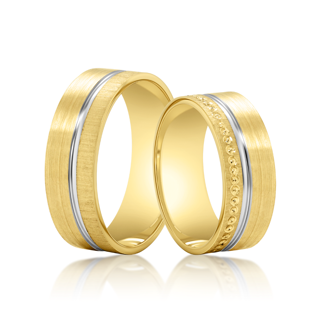 Verighetă bărbat Harmony 407 din aur galben de 14K și rodiu din aur alb