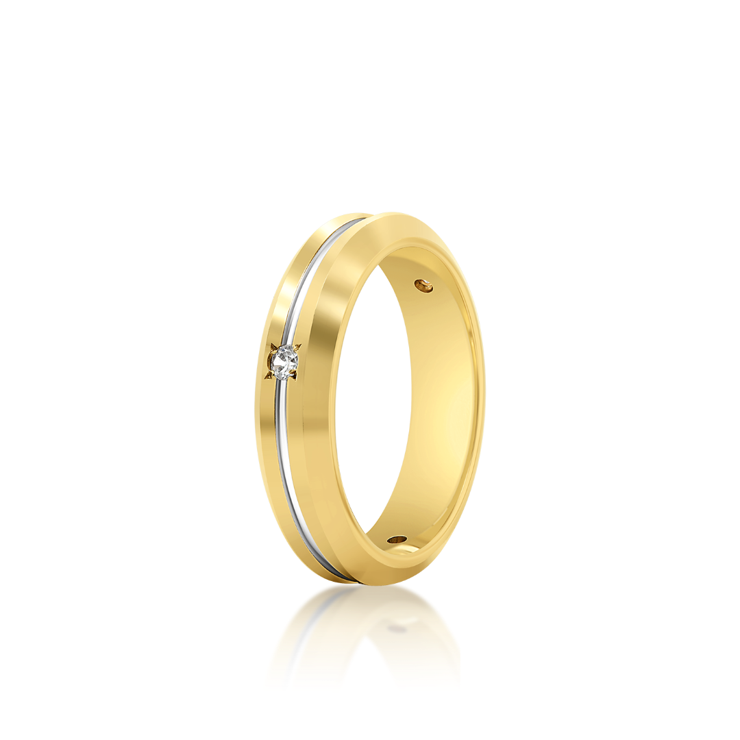 Verighetă damă Fancy 103 din aur galben de 14K cu rodiu alb și Diamante naturale