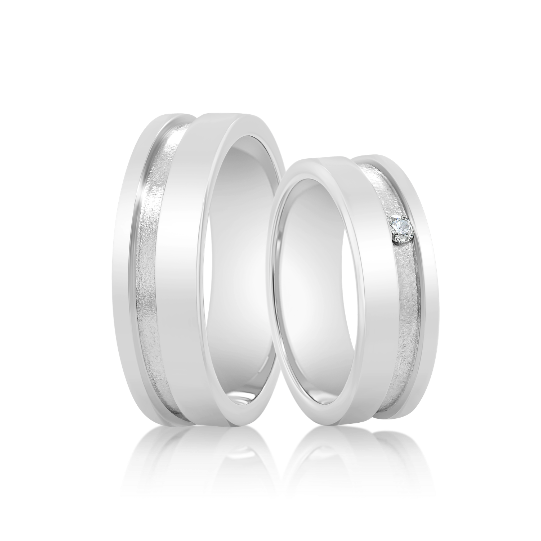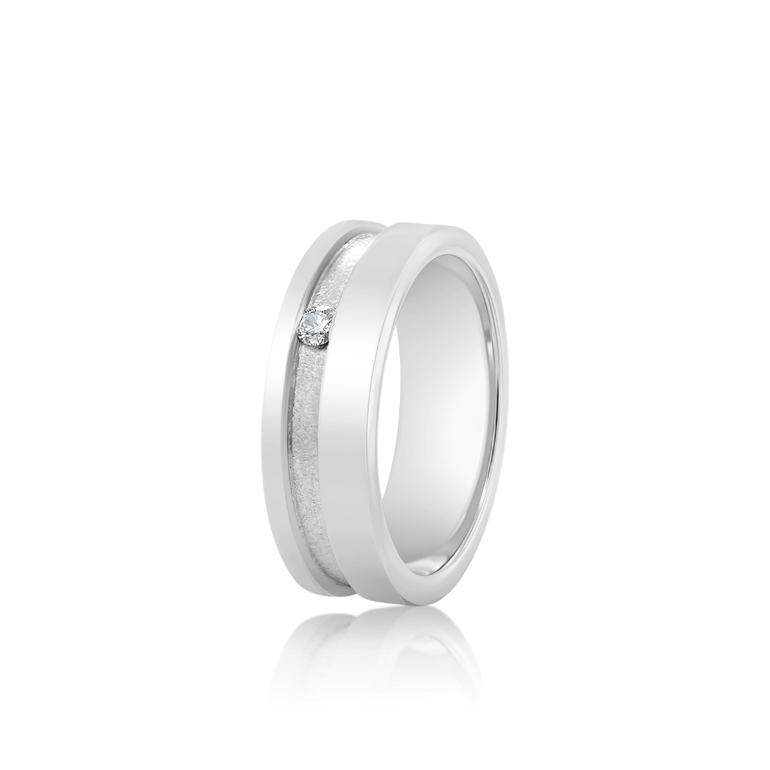Verighetă damă Fancy 109 din aur alb de 14K cu Diamant natural