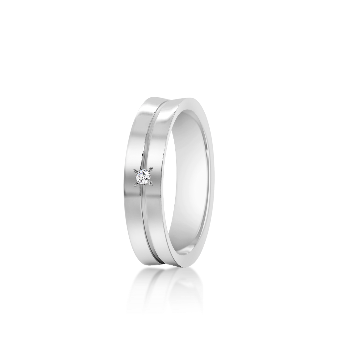 Verighetă damă Fancy 111 din aur alb de 14K și Diamant natural
