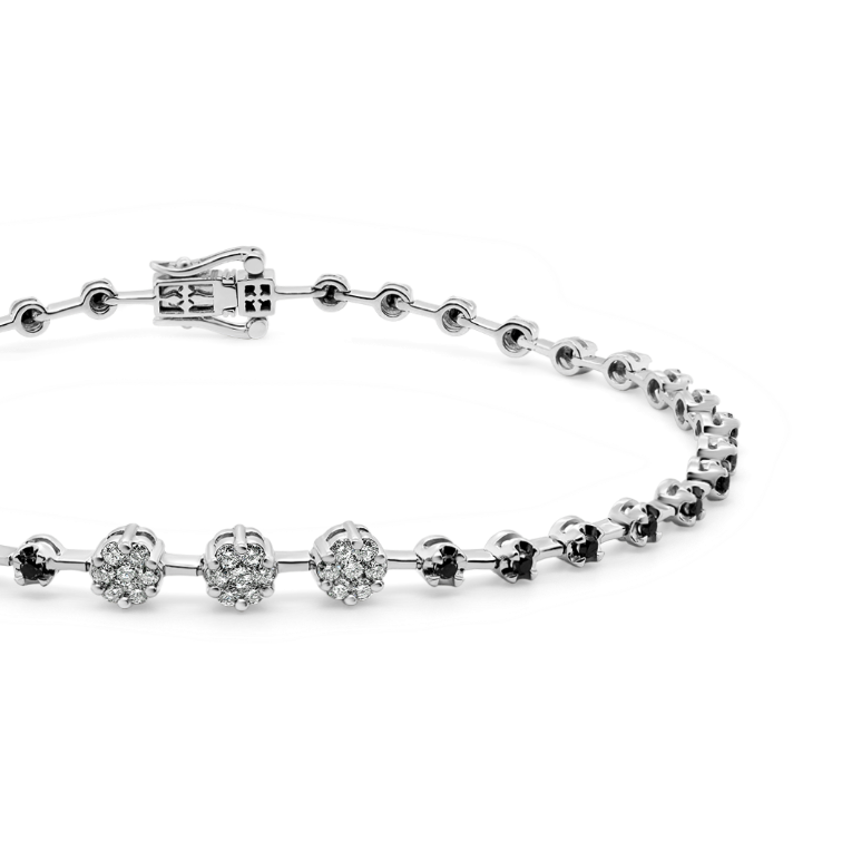 Brățară din aur alb de 18K cu Diamante naturale negre și incolore