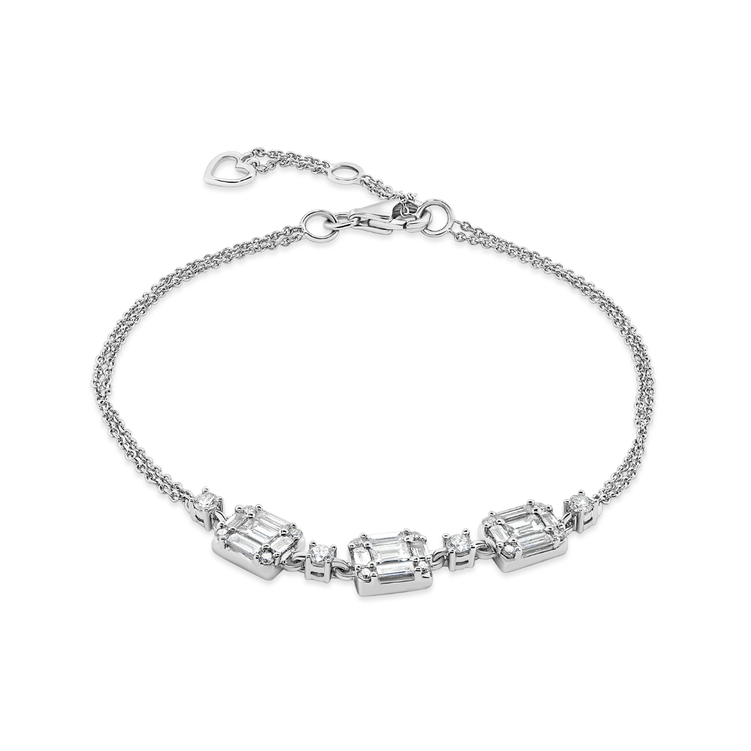 Brățară cu lanț dublu din aur alb de 18K cu 12 Diamante de 0.34ct., 16 Diamante de 0.21ct. și 3 Diamante de 0.25ct.