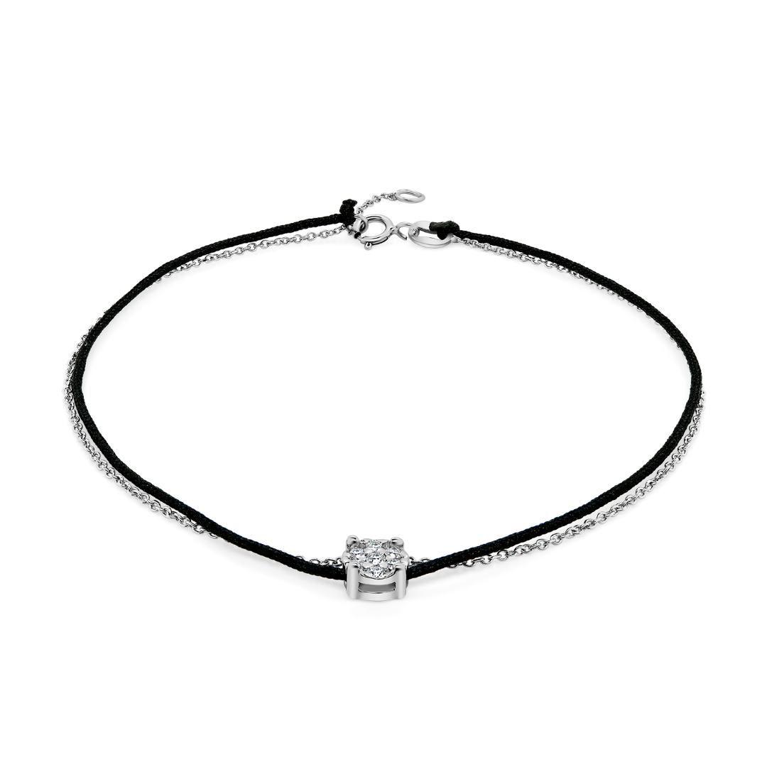 Brățară din aur alb de 14K cu șnur negru și element cu Diamante naturale brilliant cut.
