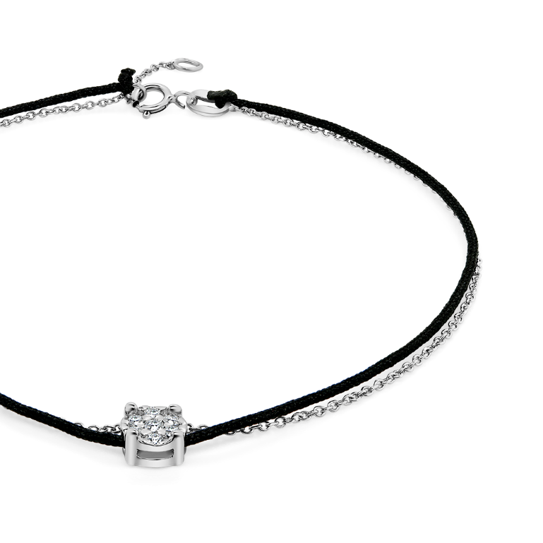 Brățară din aur alb de 14K cu șnur negru și Diamante naturale