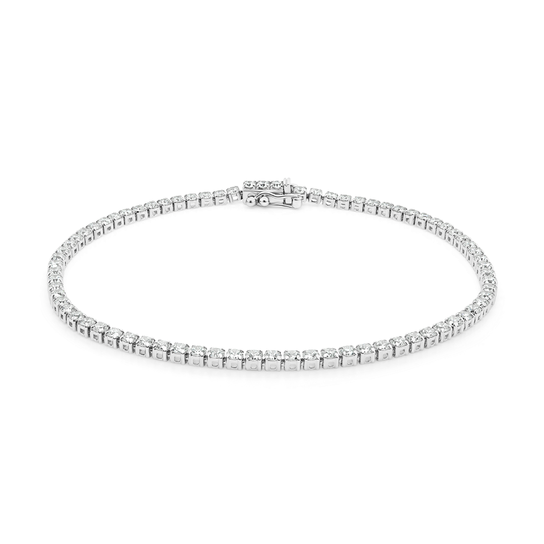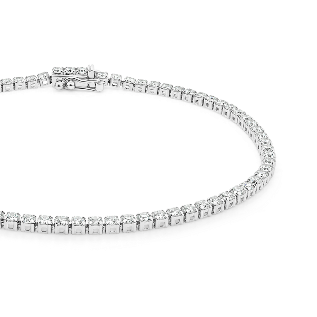 Brățară Tennis din aur alb de 18K încrustată cu Diamante naturale Round Brilliant de 2.96ct.