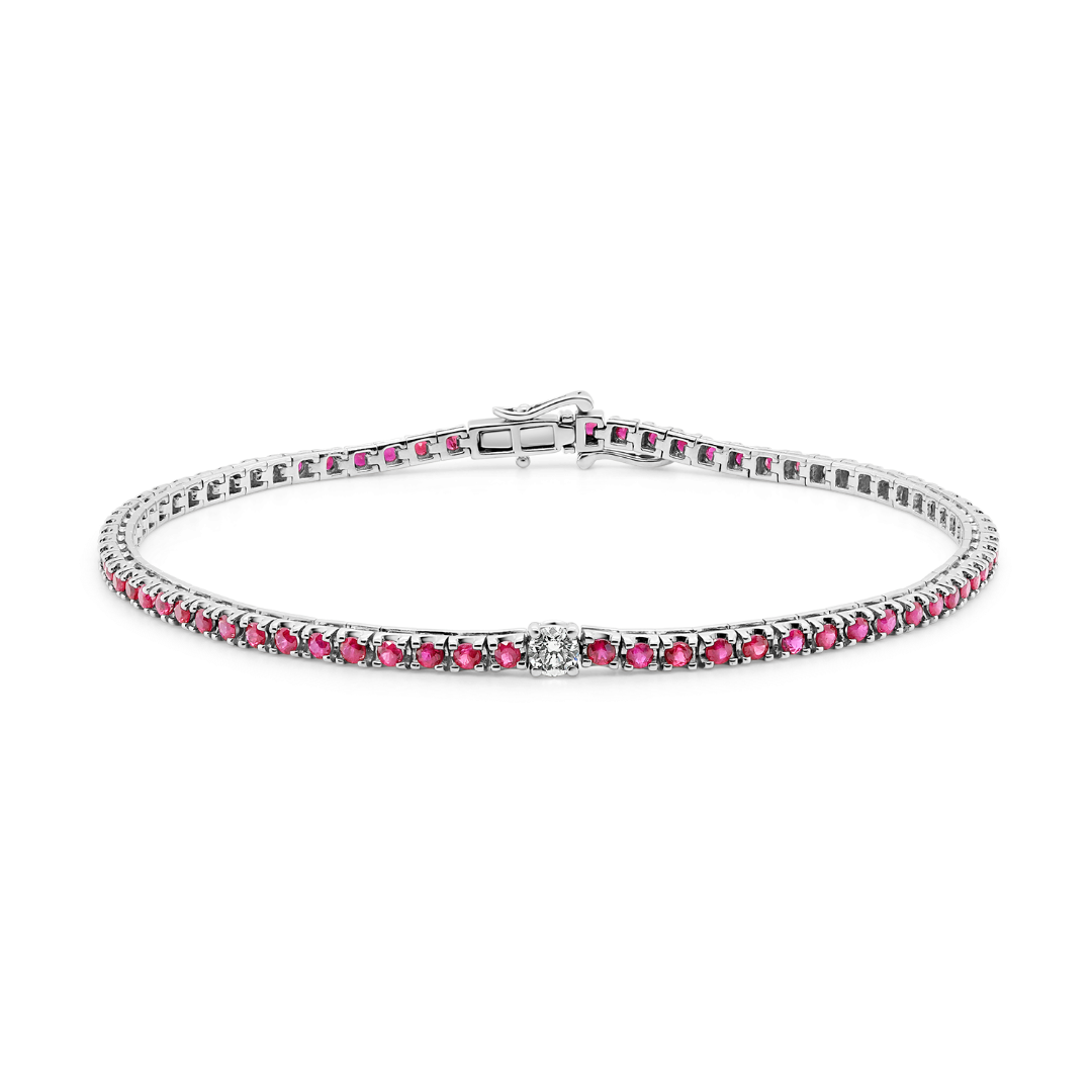 Brățară Tennis din aur alb de 18K, încrustată cu 74 de Rubine de 1.59ct. și un Diamant natural Round Brilliant de 0.11ct.
