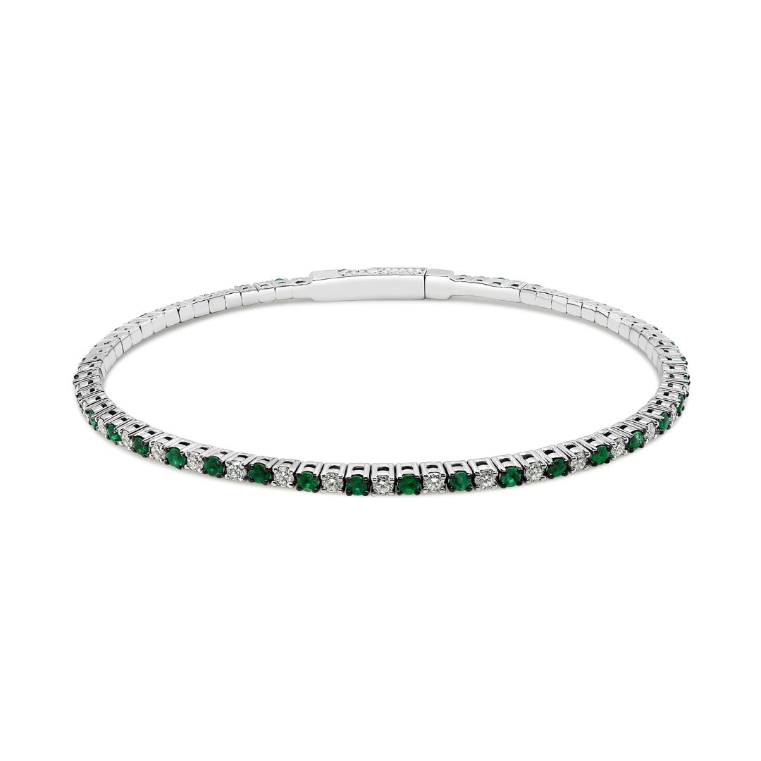 Brățară Tennis din aur alb de 18K, încrustată cu 36 de Diamante naturale de 0.89ct și 36 de Smaralde de 1.02ct.