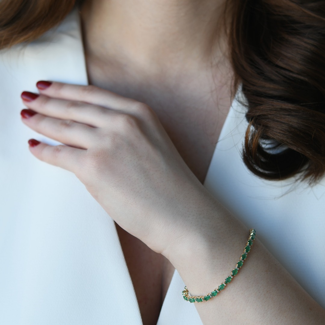 Brățară din aur alb de 18K cu Diamante și Smaralde